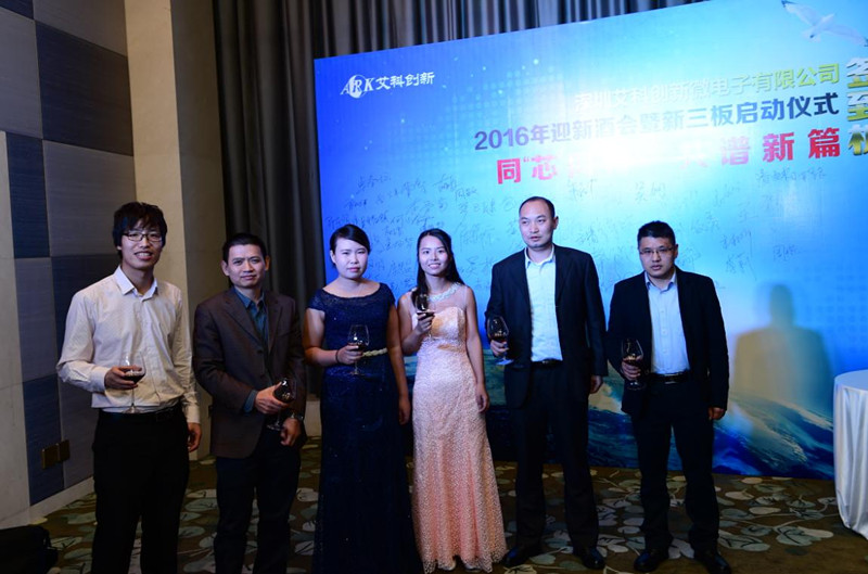 2016年1月18日下午,深圳艾科創(chuàng)新微電子有限公司在深圳市威斯汀酒店舉辦了新三板上市啟動(dòng)儀式暨2016年迎新酒會(huì)。拉開了艾科創(chuàng)新進(jìn)入資本市場(chǎng)的序幕,標(biāo)志著艾科創(chuàng)新站上了一個(gè)全新的發(fā)展平臺(tái)。